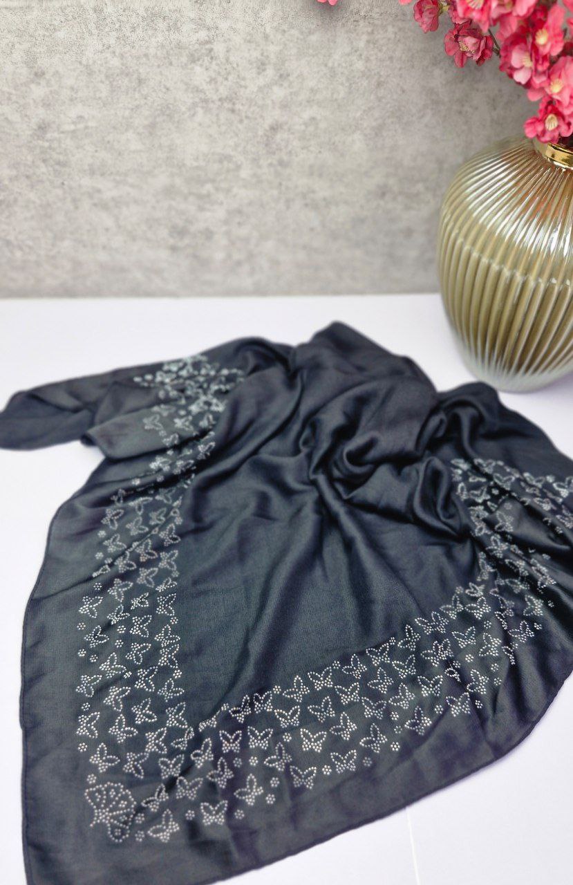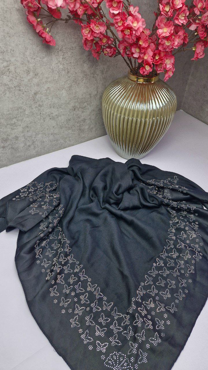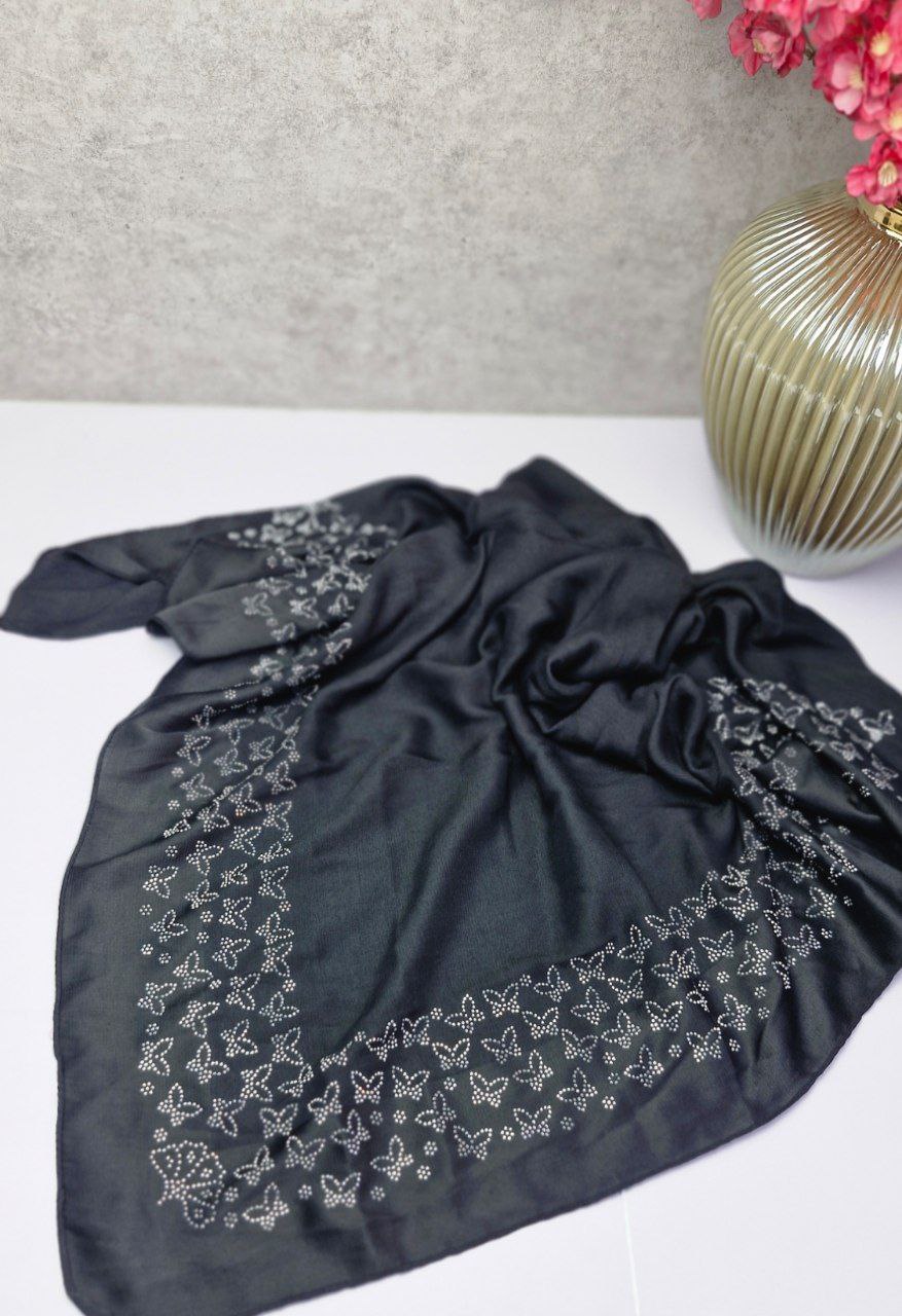 روسری نگین کاری طرح پروانه